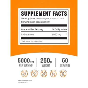 Show more Unlock the potential of your fitness journey with our exceptional L-Glutamine Powder from BulkSupplements.com. Each scoop packs a powerful punch with a generous 5000mg dose aimed at supporting your strength and performance goals. Ideal for athletes and fitness enthusiasts, this unflavored powder easily blends with any beverage to help you elevate your workouts like never before.