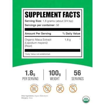 BulkSupplements.com Organic Maca Root Extract Powder - Maca Supplement, Maca Powder Organic, Maca Extract - Vegan & Gluten Free, 1.8g of per Serving, 100g (3.5 oz) (Pack of 1)