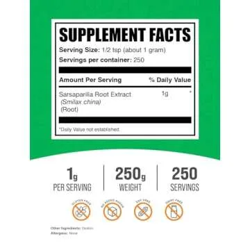 Discover the incredible health benefits packed within every scoop of BulkSupplements.com Sarsaparilla Root Extract Powder. This herbal supplement harnesses the rich natural nutrients from the Sarsaparilla root, known for its vital support in promoting overall wellness. Each serving contains a powerful dose of 1000mg of potent extract, designed to effortlessly enhance your health journey.