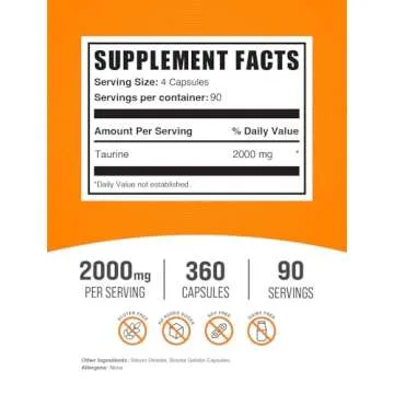 The convenience of optimized servings is a key feature of our Taurine product. With just 4 capsules per serving, it allows for easy intake management and ensures you can customize it to fit your individual schedule. This level of control means you can tailor your intake for maximum benefits, whether it's before a workout or winding down after a long day.