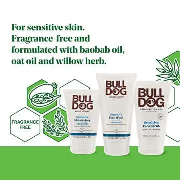 Bulldog Mens Skincare and Grooming Sensitive Full Face Kit with Moisturizer, Face Wash and Face Scrub, 3 Count