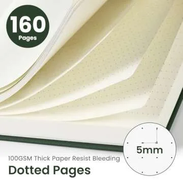 Bullet Dotted Journal Notebook for Women & Men, Hardcover Leather Journal for Writing, A5 Bullet Journaling Notebook for Work & Sketching, Perfect for Office School Home Supplies, 160 Pages, Dark Green
