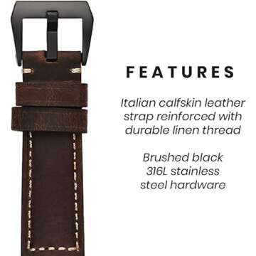 Experience unparalleled comfort with this band’s soft yet durable leather that conforms beautifully to your wrist for all-day wear. Additionally, the quick-release spring bars make it effortless to switch out bands, allowing you to customize your look for any occasion. The stitching is meticulously done to not only ensure durability but also to enhance the visual appeal of the watch band.