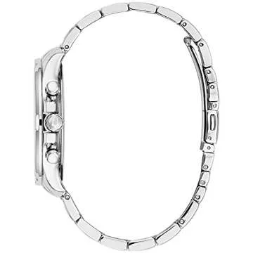 Show moreThe Bulova Men's Classic Stainless Steel Six-Hand Chronograph Quartz Watch is a stunning blend of vintage inspiration and modern functionality. This exquisite timepiece, with its sleek black dial and polished silver-tone stainless steel casing, radiates elegance and sophistication, making it a perfect accessory for any occasion. With a substantial 43mm case size, this watch features a comprehensive six-hand chronograph for precise timekeeping, a practical calendar, and a 24-hour time display that makes it both attractive and functional. The durable mineral crystal cover guarantees clarity while protecting against scratches, allowing you to maintain the watch’s pristine appearance even in everyday environments. Its impressive water resistance up to 30 meters means you can wear it without worry, whether you’re at the office or engaging in outdoor activities.