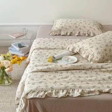 BuLuTu Muslin Cotton Quilt with Ruffles 59"x79", Vintage Floral Quilts for Kids Girls Boys