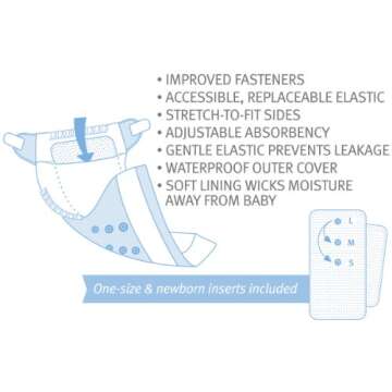 Diapers are bundled with two inserts: a newborn insert for newborns and a one-size insert for your older baby.