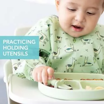 Bumkins Silicone Baby Utensils Set - Self-Feeding Support for 6+ Months