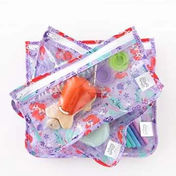 Bumkins TSA Approved Toiletry Bag Set - Disney Ariel - Reusable Travel Organizers 3-Piece