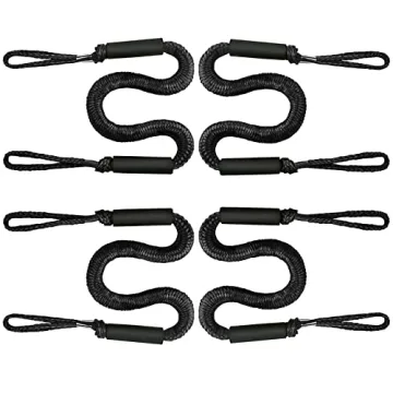 Bungee Boat Dock Line – Shock Absorbing Mooring Rope for All Watercraft, 4 Pack