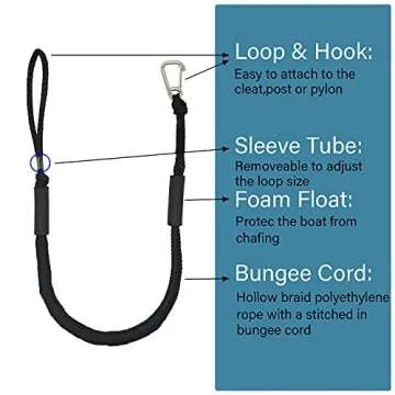 Bungee Dock Lines for Boats - Stretchable Dock Rope with Hook & Foam Float 4-5.5 ft (2 Pack)