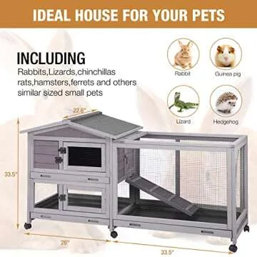 Bunny Cage Indoor and Outdoor Rabbit Hutch with Casters Waterproof Roof, Pull Out Tray from Back and Front 61.2" L x 22.6" W x 33.5" H