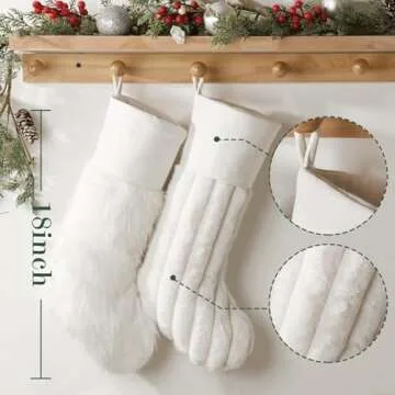 Bunny Chorus Christmas Stockings, 4 Pcs 18 Inch Luxury Snow White Ivory White Thick Plush Faux Fur Stocking with 4 Styles of Textured Patterns, Rustic Christmas Home Décor Farmhouse Xmas Decorations