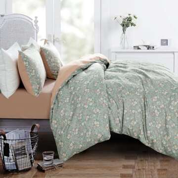 BUPIRD Queen Duvet Cover Floral 100% Brushed Microfiber 3 Pieces Vintage Chic Floral Garden Vibrant Botanical Floral Pattern Printed Queen Duvet Cover Flower with Zipper Closure (Floral, Queen)