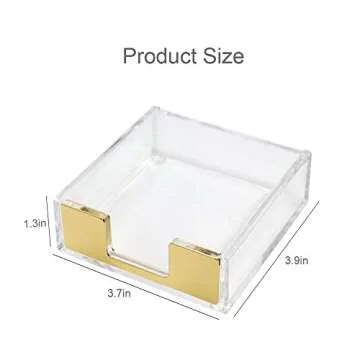 Buqoo Acrylic Sticky Notes Pad Holder Desk Organizer 3.5x3.3 Inch Memo Holder for Office Supplies(Gold) Clear Office Desk Accessories for Schools Office Home Classroom Desk Supplies