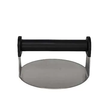 Show moreIntroducing the Burger Iron The Professional Grade Burger Smasher, a must-have tool for any burger enthusiast who craves the est of crispy, juicy burgers. Designed with an extra wide 6" round flat bottom, this burger press ensures the thinnest, crispiest burgers possible, allowing for perfect grill marks and unmatched flavor retention. Made from premium stainless steel, the smooth surface minimizes sticking; just smash, twist, and lift your burger to achieve that delectable sear that restaurant chefs swear by. Whether you're grilling at home or in a professional setting, this press will elevate your burger game to new heights!