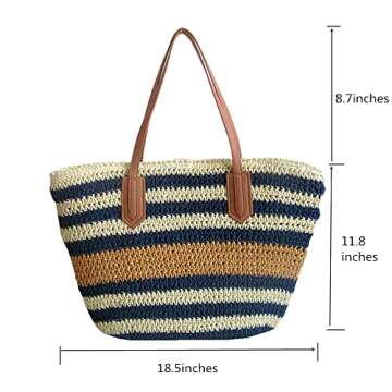 Introducing the Burkburg Straw Beach Tote Bag, your perfect companion for those sunny days spent soaking up the sun! This beautifully crafted woven beach bag is made from high-quality straw, ensuring it's both lightweight and durable. The classic blue and white striped design beautifully echoes the essence of summer, making it a stylish addition to any outfit. Measuring at 18.5 x 11.8 x 5 inches with a handle drop of 8.7 inches, it offers ample space for all your summer essentials,...