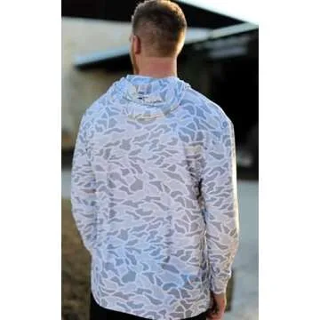 Burlebo Men's Long Sleeve Hoodie Sweatshirt (White Camo, Large)