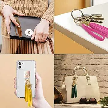 Burro Leather Tassel Women Keychain Car Keyring Handbag Accessories with a Gift Package (Grey)