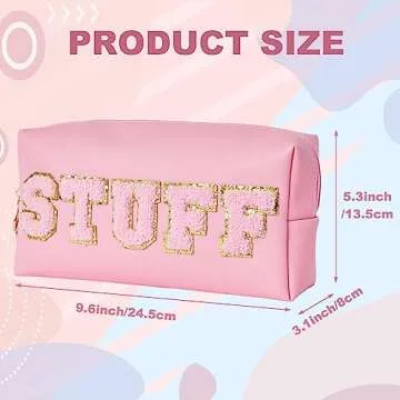 If elegance and functionality are what you seek, look no further than the Burskit Christmas Gifts for Her Preppy Patch Stuff Portable Makeup Bag. This exquisite cosmetic bag stands out with its charming soft white and pink color scheme, accented by a bold 'STUFF' lettering dressed in golden trim. With dimensions measuring a modest 9.8 x 2.7 x 5.3 inches, this bag is not just stylish, but also highly practical, offering generous storage for a variety of essentials - from cosmetics to mobile devices, wallets,...