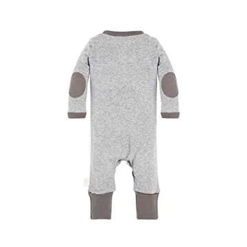 Burt's Bees Baby Matelasse Organic Kimono One Piece Jumpsuit for Infants - Heather Grey with Elbow Patches
