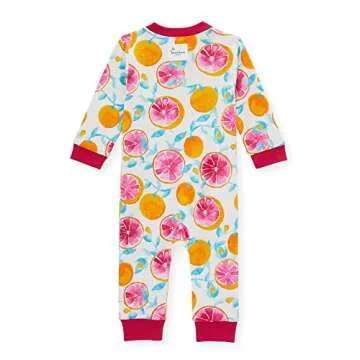 Burt's Bees Baby Girls Sleep & Play Zip-Up Footies - Organic Cotton, Gushing Grapefruit, 6M