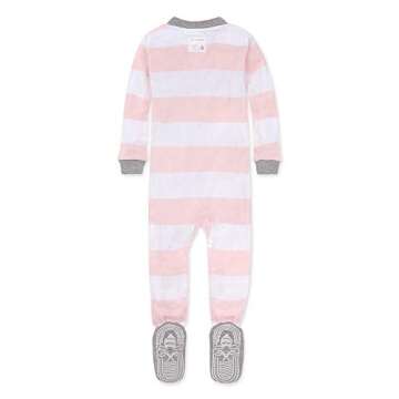 Burt's Bees Baby, Baby Girls,Sleeper Pajamas, Zip Front Non-Slip Footed Sleeper PJs, 100% Organic Cotton, Pink Rugby Stripe, 3-6 Months