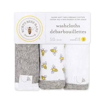 Burt's Bees Baby Infant Washcloths, 100% Organic Cotton, Soft and Super Absorbent Knit Terry Wash Cloth - 3 Pack Set