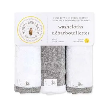 Burt's Bees Baby Infant Washcloths, 100% Organic Cotton, Soft and Super Absorbent Knit Terry Wash Cloth - 3 Pack Set