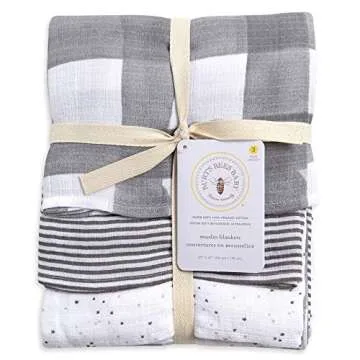 Show moreIntroducing the **Burt's Bees Baby Woven Muslin Swaddle Blankets** – a thoughtfully designed set of three swaddles crafted from 100% organic, GOTS certified muslin cotton. Measured at an impressive 47" x 47", these blankets ensure that swaddling your little bundles of joy is not just easy but also exceptionally comfortable. The charming array of prints and patterns adds a delightful touch to every cuddle session, making these swaddles a must-have nursery essential. Perfectly lightweight and breathable, they cater to your baby's delicate needs while providing versatility for various uses, including nursing covers, stroller blankets, and burp cloths. Experience unmatched quality and style with Burt's Bees, a trusted name in natural baby products.