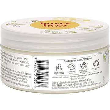 Show moreBurt's Bees Mama Bee Belly Butter is the ultimate solution for expecting mothers seeking to nourish and protect their stretching skin. Formulated with the best natural ingredients, this richly blended belly butter is designed to provide deep and lasting moisture, making it perfect for daily use to keep your skin soft and supple. With a generous 6.5 ounces, this fragrance-free lotion allows Mamas to embrace their beautiful journey of motherhood without the worry of harsh chemicals or irritating scents.