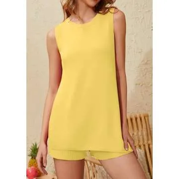 Burtell Women Summer 2 Piece Sweater Sets Casual Crew Neck Sleeveless Knit Tank Top Mini Shorts Lounge Set Solid Beach Outfit