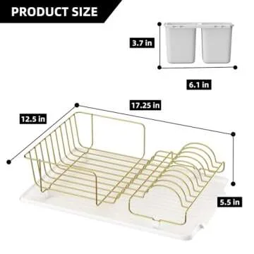 Buruis Dish Drying Rack, Gold Dish Drainer Organizer Includes Removable Drain Board and Utensil Holder, Large Capacity Stainless Steel Dish Racks for Kitchen (White)