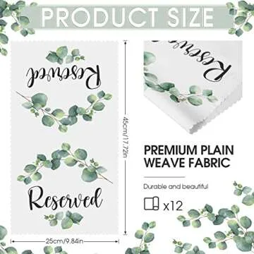 Show moreIntroducing the exquisite Buryeah Reserve Cloth White Reserved Seating Placeholder, a carefully curated set designed to enhance the elegance of every special occasion! This versatile package includes 12 beautifully crafted church pew reserved signs, perfect for weddings, church events, and various gatherings. With dimensions of approximately 45 x 25 cm (17.72 x 9.84 inches), these signs are not only perfectly sized for easy visibility but also subtle enough to complement any décor without overwhelming it.