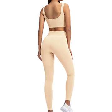 BUSCANDO Womens Workout Sets 2-Piece - Seamless Ribbed Yoga Outfit High Waist Leggings Sports Bra (1# Beige, Medium)