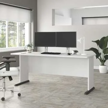 Bush Business Furniture Studio A 72W Computer Desk in White, 6 Foot Gaming and Work Table for Home or Professional Office