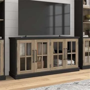 Bush Furniture Westbrook 60W TV Stand for 75 Inch TV in Vintage Black/Restored Tan Hickory | Living Room Entertainment Center with Storage