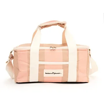 Show more Introducing the **Business & Pleasure Co. Holiday Cooler Bag**, your ultimate companion for sunny outings and al fresco dining! Designed with functionality and style in mind, this versatile cooler bag is ideal for all outdoor adventures, whether you are heading to the beach, enjoying a picnic in the park, or embarking on a road trip. With a **generous capacity of 13 liters**, it's spacious enough to accommodate all your essentials—from up to **12 cans or 2 wine bottles** to snacks and sandwiches—ensuring that you stay refreshed in the heat. The cooler’s striking **70s Sand and Pink** color scheme is not only eye-catching but also a statement of style amidst the sun-drenched landscapes.