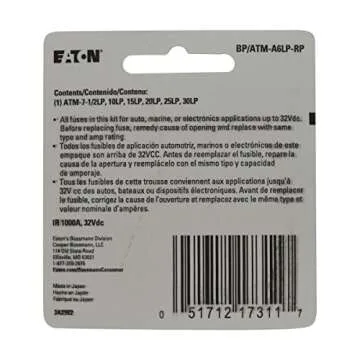 Show moreExperience safety and reliability with the Bussmann (BP/ATM-A6LP-RP) ATM-LP Low Profile Fuse Assortment Kit. This essential kit contains six meticulously crafted low-profile mini fuses designed to shield your automotive electronics from overload. Equipped with fast-acting capabilities, these fuses respond swiftly to faults, ensuring your vehicle's components are protected when they need it most. Their low-profile design not only saves space but also enhances compatibility with a variety of automotive applications.