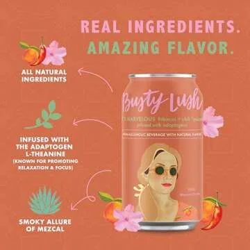 Busty Lush SHE'S MARVELOUS Non-Alcoholic Mezcalita, Craft Mocktails feat. Alcohol Free Smoky Mezcal, Hibiscus, Fresh Citrus, Spicy Chile and Agave, Infused with L-Theanine, 8 Pack