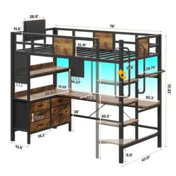 Show moreIf you're on the lookout for a stylish and functional sleeping solution that goes beyond the basics, the busyaeh Loft Bed Twin Size is sure to impress! Designed to maximize limited space, this twin-sized bunk bed seamlessly integrates a modern desk underneath, multifunctional storage, and vibrant RGB LED lights. With a maximum load-bearing weight of 400lbs, this sturdy masterpiece offers safety and durability that meets the bustling needs of both youngsters and teens. Plus, the eye-catching vintage brown finish adds a rustic charm that complements any bedroom decor.