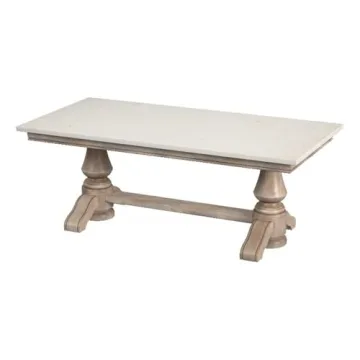 Show moreIntroducing the Butler Specialty Company Danielle Marble and Wood Coffee Table, a stunning addition to your living space that marries elegance with functionality. Crafted with a beautiful sandalwood beige finish, this coffee table boasts a light tan hue with a washed appearance, making it not just a furniture piece, but a statement of style. The genuine marble top rests gracefully on a plush, solid mahogany wood base, ensuring durability and adding a touch of luxury to your home. The combination of plywood and solid wood construction not only enhances the aesthetic appeal but also provides a sturdy foundation that will withstand the test of time.