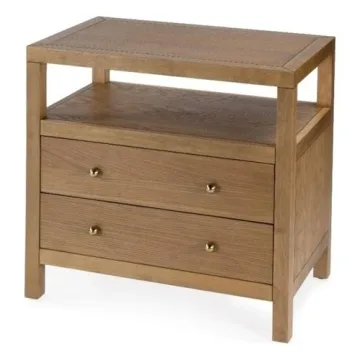 Show moreIntroducing the Butler Specialty Company Nora 2 Drawer Wood Wide Nightstand in a stunning light natural brown wood finish, perfect for any contemporary bedroom setting. This nightstand combines style and functionality seamlessly with its beautiful wire-brushed antique taupe finish, giving it a lightly textured, rustic charm. Crafted from a premium blend of Rubber Wood, Engineered Wood, Oak Veneer, and Solid Pine, this piece not only boasts a striking appearance but also ensures durability and longevity. The innovative engineered wood provides strength and allows for a specific aesthetic that solid wood may not deliver, while the veneer offers a smooth and consistent color tone that elevates your space.
