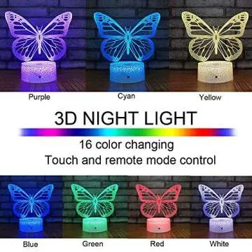 Butterfly 3D Illusion Lamp - Kids Bedside Lamp with 16 Color Changing Remote Control - Birthday Gift for Girls