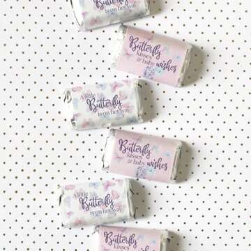 Butterfly Girl Baby Shower Miniature Chocolate Candy Bar Wrappers, A Little Butterfly is on Her Way Baby Shower Decorations, It's a Girl Favor Stickers - 45 Count