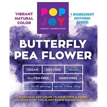 Show moreIntroducing the **Butterfly Pea Flower Powder** by **POPJOY**, a vibrant superfood that will elevate your culinary adventures! Sourced from the beautiful petals of the Clitoria ternatea plant, this striking blue powder is not only visually stunning but also packed with nutritional benefits. With its natural, vibrant hue, it's perfect for adding a splash of color and healthiness to your smoothies, teas, baked goods, and more. Whether you're a health enthusiast or a culinary explorer, this versatile powder is sure to impress.