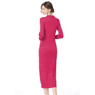Show moreIntroducing the Button Down Bodycon Sweater Dress, the ultimate blend of style and comfort. Made with lightweight and soft knitted material, this ankle-length dress (53.14") is designed to keep you warm during the chilly winter and fall months without compromising on your chic aesthetic. Its thick rib knit stitching creates a luxurious texture that feels gentle against your skin, making it perfect for everyday wear. This slim fit bodycon design elegantly flatters your silhouette, allowing for a beautifully feminine shape while providing the comfort of a cozy sweater. The cozy button down collar neck not only adds a touch of sophistication but also stays in place, ensuring a stylish look all day long.