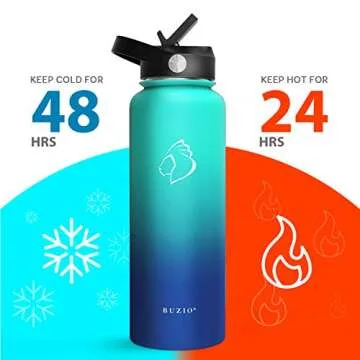 Show moreIntroducing the **BUZIO Double Wall Stainless Steel Sports Water Bottle** – your ultimate hydration companion designed to elevate your outdoor adventures! With its innovative **TempArmour technology**, this 40 oz water bottle offers exceptional thermal insulation, keeping your beverages cold for up to **48 hours** and hot for **24 hours**. Crafted with a sleek and stylish Pacific Dream finish, this bottle merges functionality with aesthetics, making it perfect for gym-goers, athletes, and outdoor enthusiasts alike.