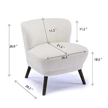 Show more This exquisite accent chair redefines modern elegance with its unique design and quality craftsmanship. Upholstered in soft sherpa fabric, it offers a luxurious feel that adds warmth and sophistication to any room. The high-density seat cushion ensures maximum comfort, while the sturdy solid wood legs provide not only durability but also a touch of natural beauty. Designed with a curved back, this chair delivers excellent support, making it a fantastic addition to your home furnishings. Whether you place it in the living room, bedroom, or study, its versatility shines through.