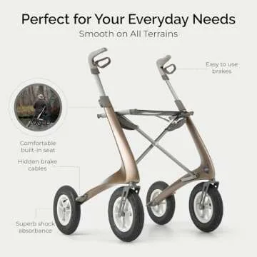 When you choose the Carbon Overland, you’ll be delighted by its stability and strength. The walker features shock-absorbent tires to ensure a smooth ride, a sturdy frame for maximum support, and a comfortable built-in seat that allows you to take breaks whenever necessary. With the ability to fold easily, it makes for convenient storage and transportation, making it the perfect companion for outings.