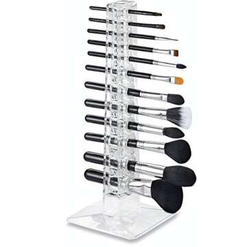 Show moreIntroducing the perfect solution for makeup enthusiasts and professionals alike: the sophisticated beauty brush organizer that transforms your vanity into a chic and orderly space. Crafted from durable crystalline acrylic, this stunning brush tower offers a crystal clear view of your favorite brushes while elegantly displaying them. Each hole features a silicone plug that grips your brushes securely, allowing for optimal organization and drying. Specifically designed with three different hole sizes, it can accommodate up to 12 brushes of varying lengths and shapes, from wide face brushes to petite eye detailing brushes.